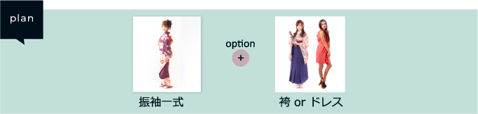 お母さまやお姉さまの振袖をお持ち込みいただくプランです。当店がご用意する小物で、あなただけの振袖コーデにしませんか♪