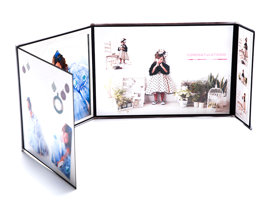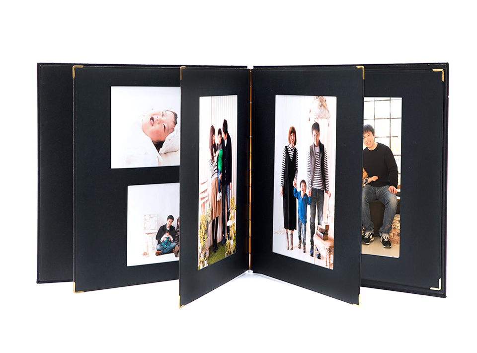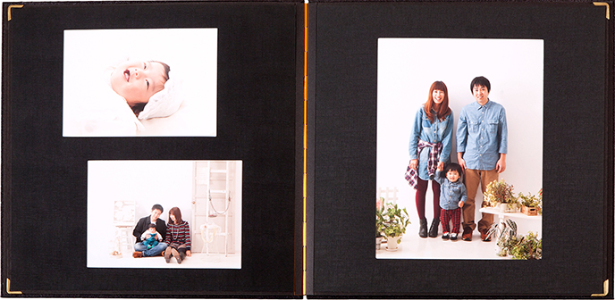 厚手の高級台紙に写真を貼り付け、中枠を上から貼りしっかり固定した商品です。シンプルな作りなので、何年たっても飽きのこない定番商品です。
