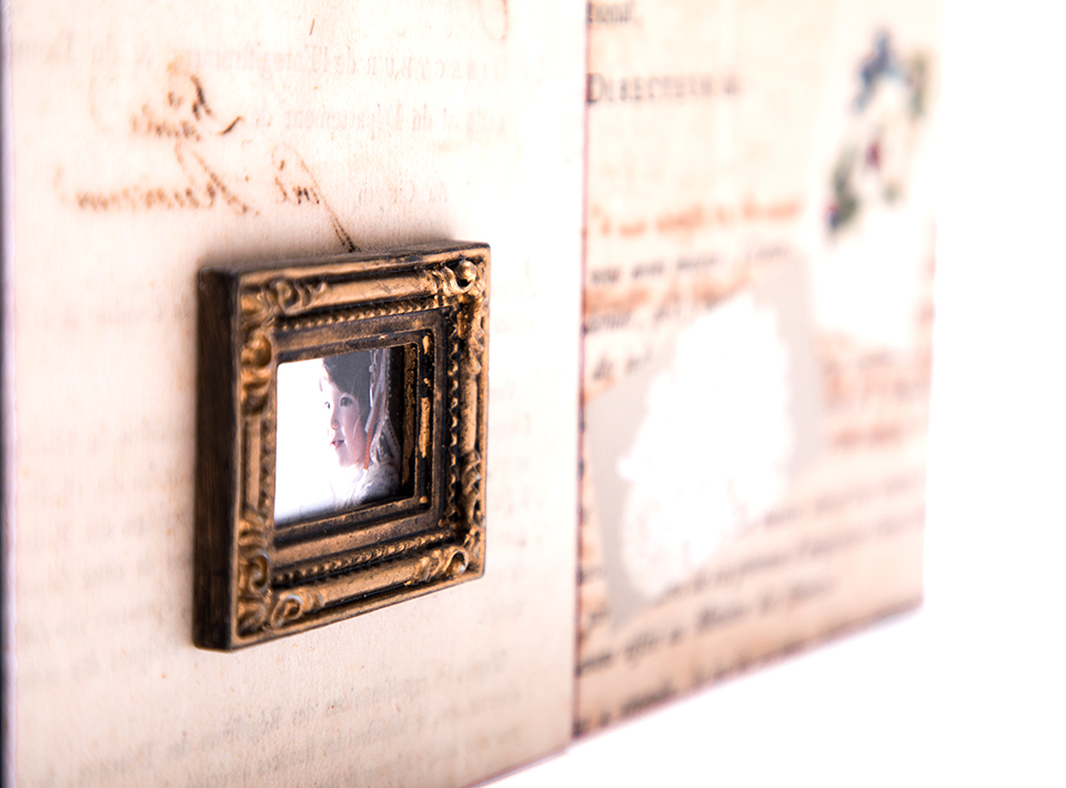 ショーケースの中をレースや写真でコラージュしたアルバム