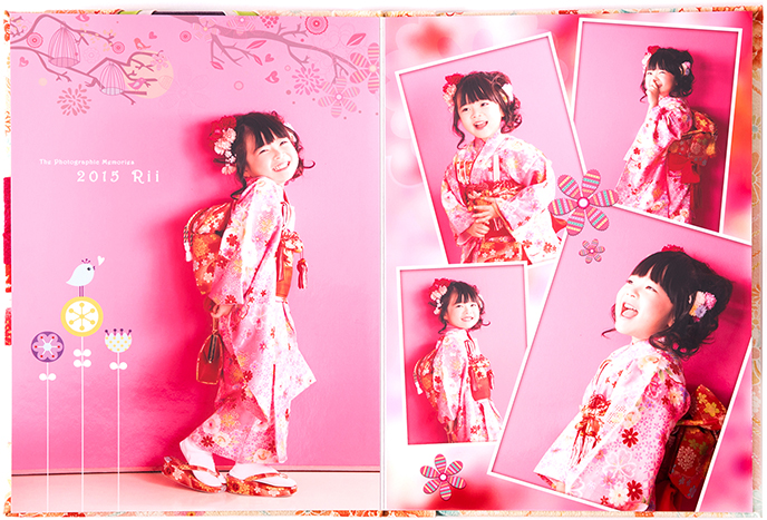 着物をイメージして作られたアルバム。見た目・サイズ感、共に可愛らしく七五三にピッタリの商品です。ピンク、赤の2パターンよりお選び頂けます。