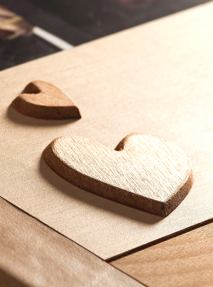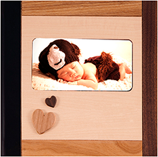 ナチュラルなウッドの温もりを感じるアルバム。表紙にはお名前や日付を彫刻でき、木目の質感を豊かに演出します。